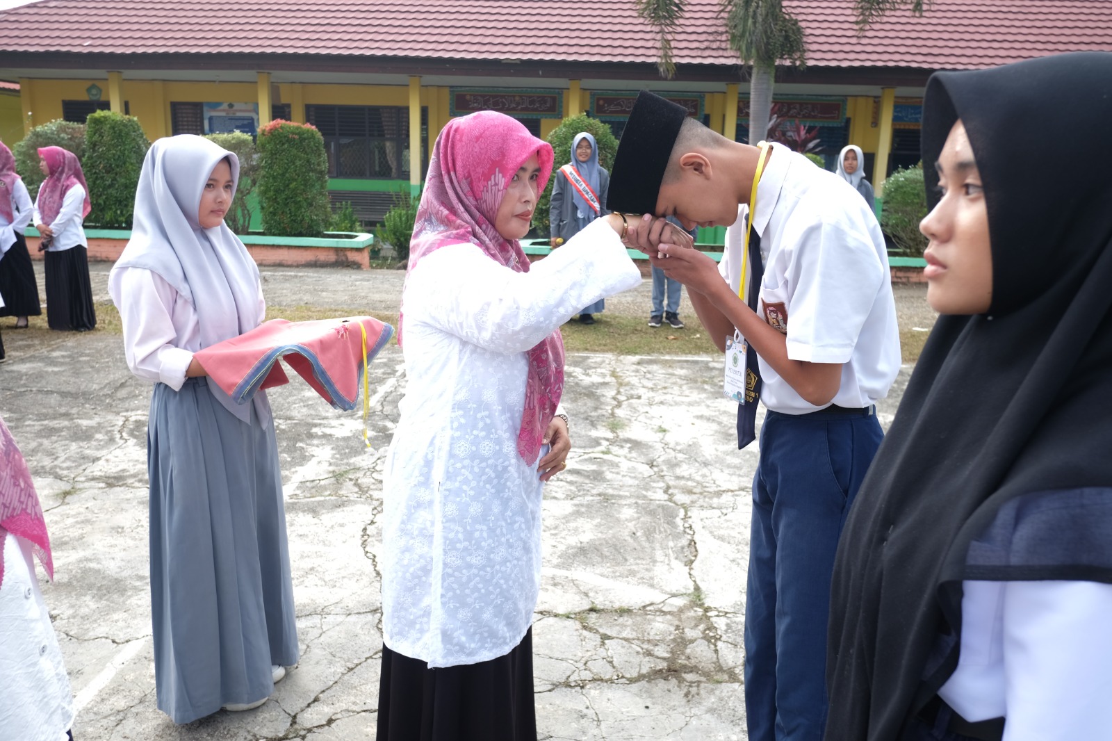 Kepala MAN 2 Tebo Hj Elya Pitri dalam amanatnya mengucapkan selamat datang peserta didik baru MAN 2 Tebo Mari ikuti kegiatan Matsama dengan gembira jadikan Madrasah sebagai tempat yang nyaman dan senang untuk belajar bersama