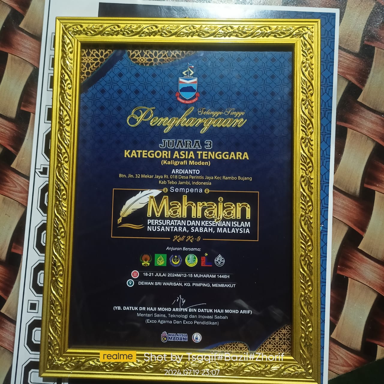 Guru Seni Budaya MAN 2 Tebo Jambi berhasil mengharumkan nama Indonesia dengan meraih juara 3 dalam kejuaraan kaligrafi Islam Nusantara ke-IX pada tahun 2024 di Sabah Malaysia.