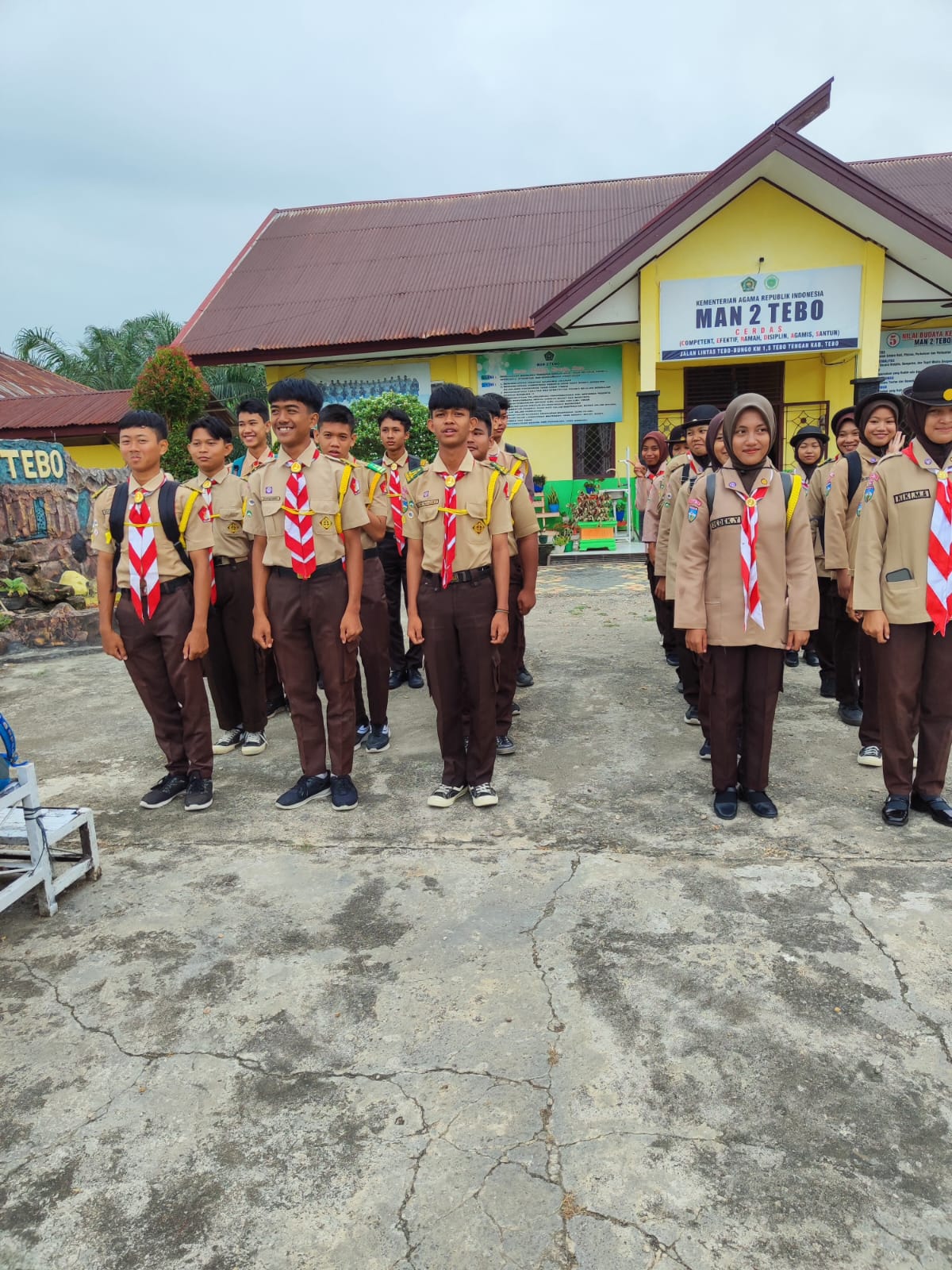 Tebo - MAN 2 Tebo, Pasukan Pramuka MAN 2 Tebo ( 1 sangga Putra dan 1 sangga putri) mengikuti apel gelar pasukan siaga darurat bencana kebakaran hutan dan lahan (Karhutla) Kabupaten Tebo Tahun 2024 pada Rabu (31/07/2024). Apel ini dipimpin oleh Penjabat (PJ) Bupati Tebo, Dr. H. Varial Adhi Putra, ST, MM, yang bertindak sebagai Inspektur Upacara (Irup).