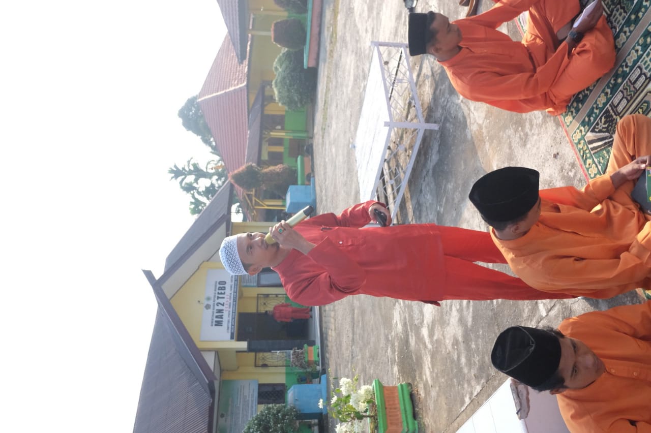 HUMAS M A N 2 Tebo TV, Muara Tebo. Dalam Rangka Sebagai upaya pembinaan akhlak, pembinaan kerohanian, pembiasaaan pembacaan Surah Yasin, Keluarga Besar MAN 2 Tebo menggelar kegiatan Jumat Taqwa setiap pagi Jum’at di lapangan halaman Kampus hijau MAN 2 Tebo Cerdas telah menjadi agenda rutin setiap pekannnya sebelum KBM dimulai. Kegiatan yang diikuti dengan hidmat oleh seluruh warga madarsah ini.