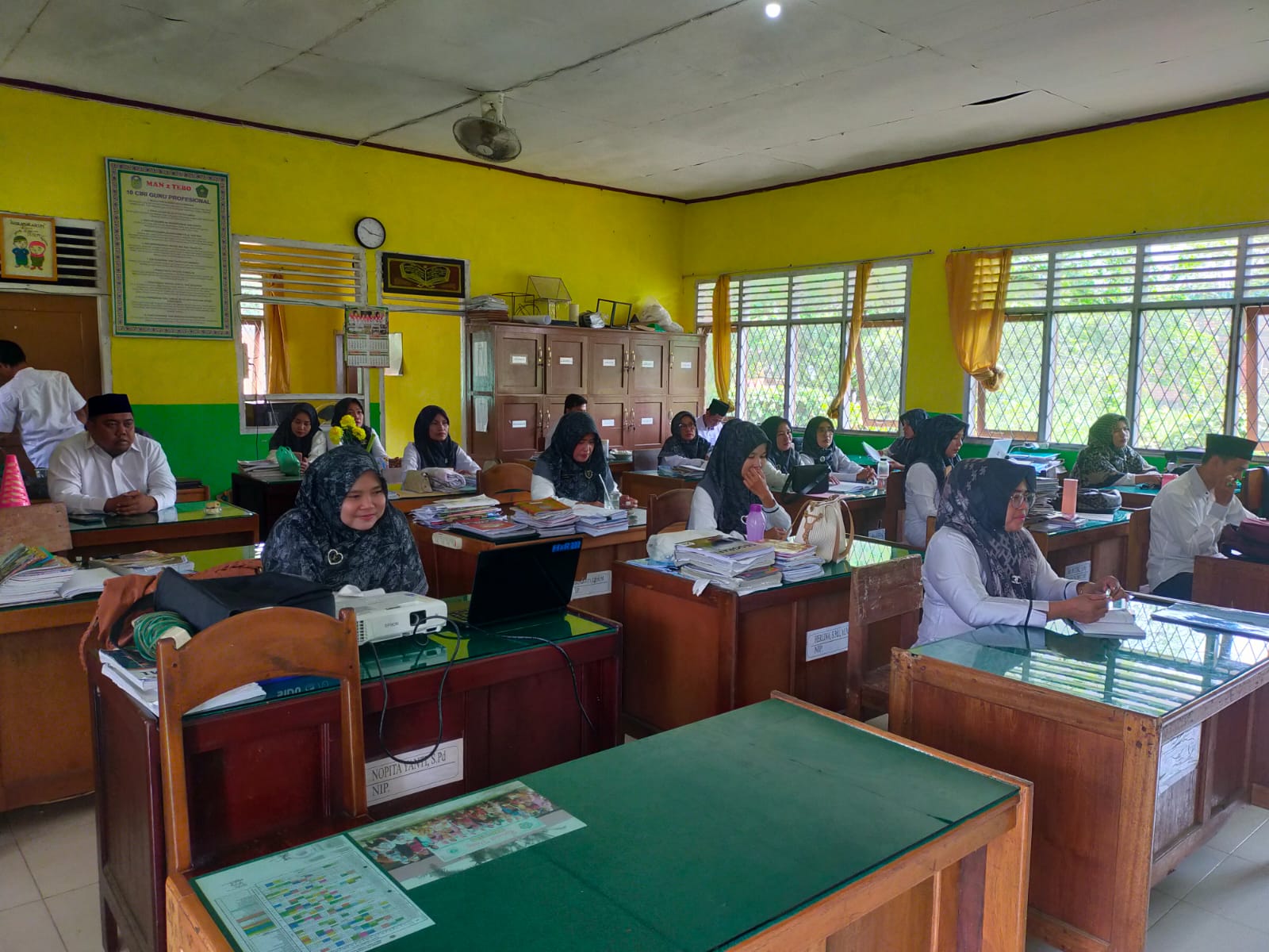 Rapat yang dipimpin langsung Ke[ala Madrasah MAN 2 Tebo, Hajjah Elya Pitri, dimulai pukul 10.45-12.00 di damping Kaur TU Ita Rahmini, Wakil Kepala Madrasah Bidang Kurikulum dihadiri seluruh Guru, Tenaga Pendidik beserta staf..