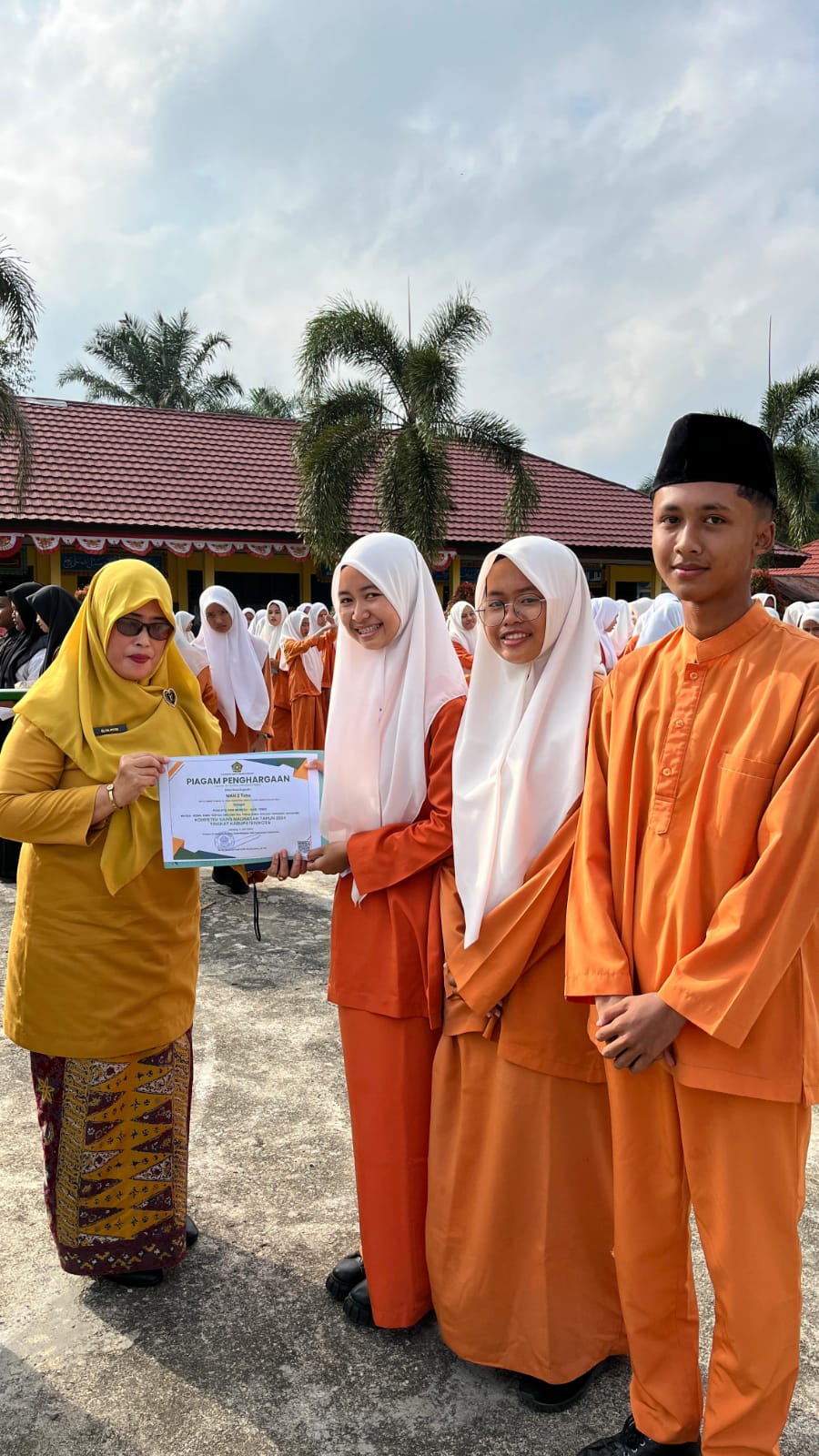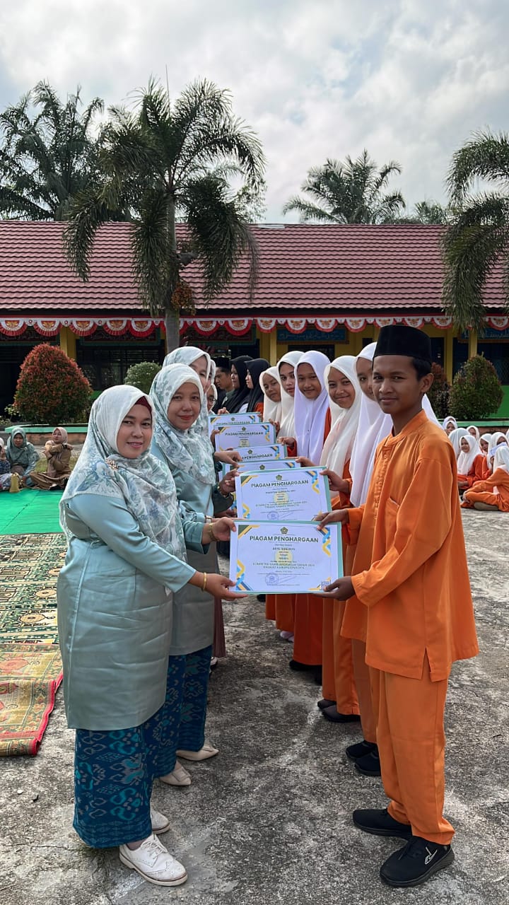 Penghargaan diserahkan langsung oleh Hajjah Elya Pitri di Halaman Lapangan Upacara Man 2 Tebo Cerdas pada Jum’at, (9/8/2024).