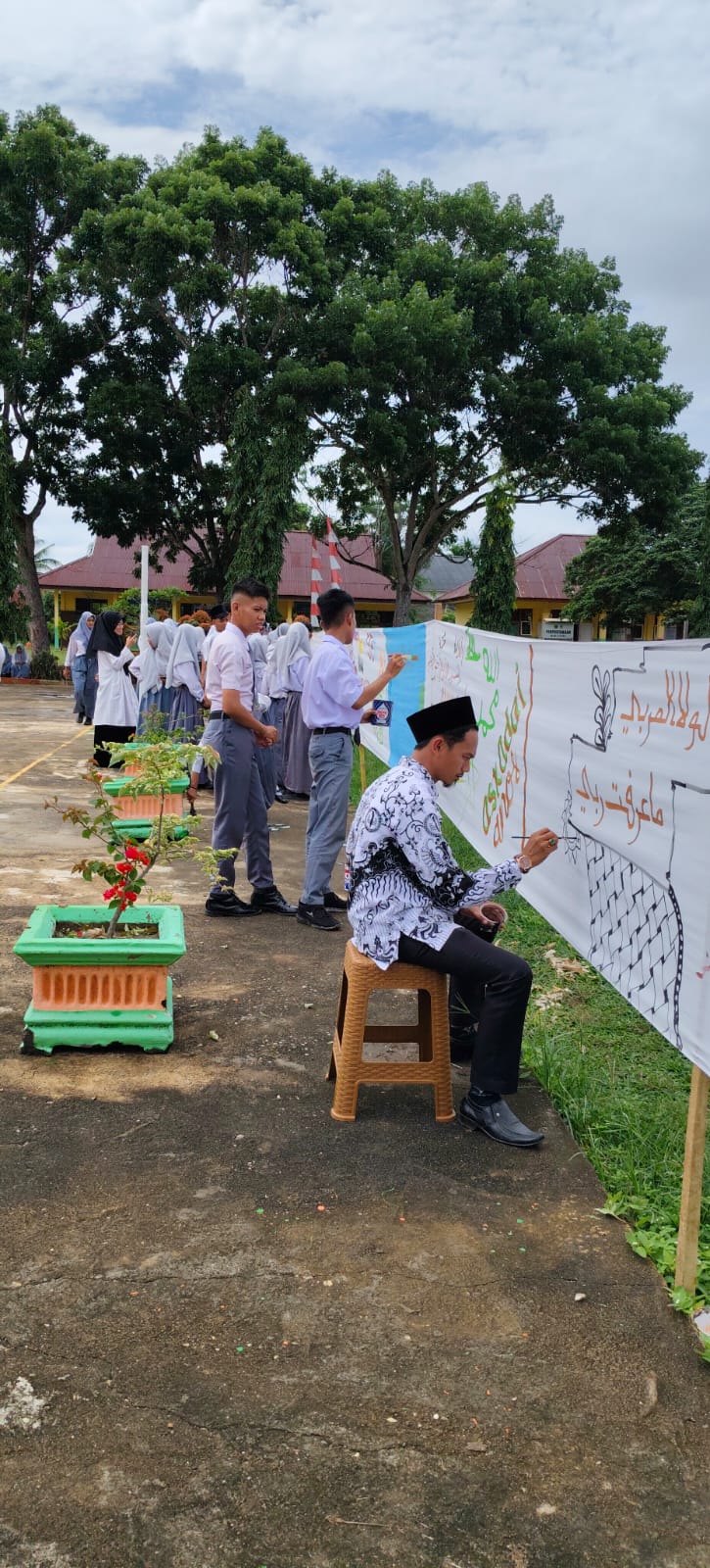 HUMAS MAN 2 Tebo TV, Muara Tebo, News – Dengan penuh semangat, antusias dari Keluarga Besar MAN 2 Tebo, majlis guru, siswa/i secara bersama-sama melukis dengan sangat serius. Ini Perdana kali dilaksanakan di MAN 2Tebo dan menurut Media MAN 2 Tebo TV merupakan jenis media lukis terpanjang Tingkat Madrasah Aliyah Kabupaten Tebo.