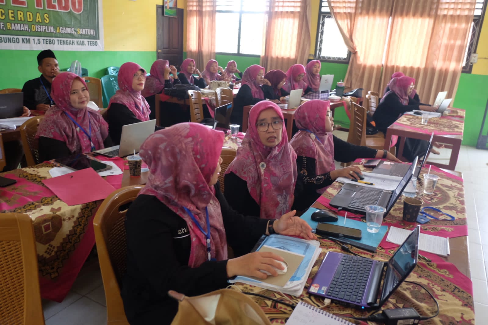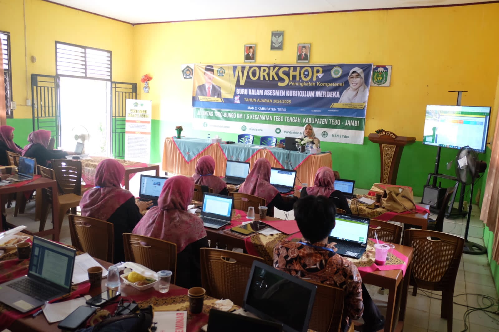 HUMAS MAN 2 Tebo TV, Muara Tebo, News – Jum’at, (13/12), kemaren Bertempat di ruang Laboratorium Komputer 2 MAN 2 Tebo, telah terlaksana kegiatan Workshop Peningkatan Kompetensi Guru Dalam Assesment Kurikulum Merdeka dan Penguatan P5RA. Menghadirkan Narasumber sesuai bidangnya, Kiki Fatmawati, S.Pd., M.Pd. Dosen Fakultas Tarbiyah UIN STS Jambi. Narasumber menyampaikan perlunya melakukan refleksi dalam pembelajaran kegiatan yang dilakukan dalam proses belajar mengajar dalam bentuk penilaian tertulis dan lisan oleh guru untuk peserta didik dan oleh peserta didik untuk guru untuk mengekspresikan kesan konstruktif, pesan, harapan, dan kritik terhadap proses pembelajaran.