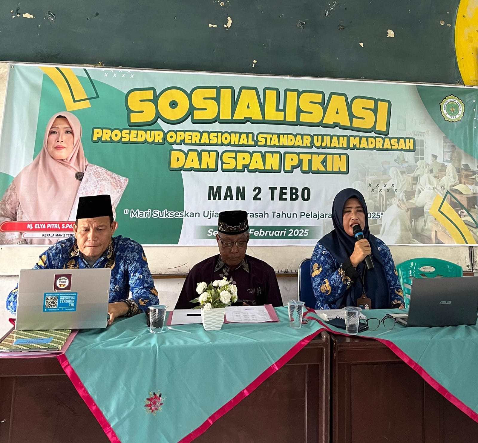 HUMAS MAN 2 Tebo TV, Muara Tebo, News – Sosialisasi Prosedur Operasional Standar (POS) Ujian Madrasah (UM) berdasarkan Surat Edaran Kemenag RI Direktorat Jenderal Pendidikan Islam melalui SK No. 694 Tahun 2025 tentang SOP Penyelenggaraan Ujian Madrasah Tahun Ajaran 2024/2025 kepada orang tua / wali siswa/I. Dilaksanakan di Ruang kelas XII. 1 dan XII. 2. Senen (17/02).