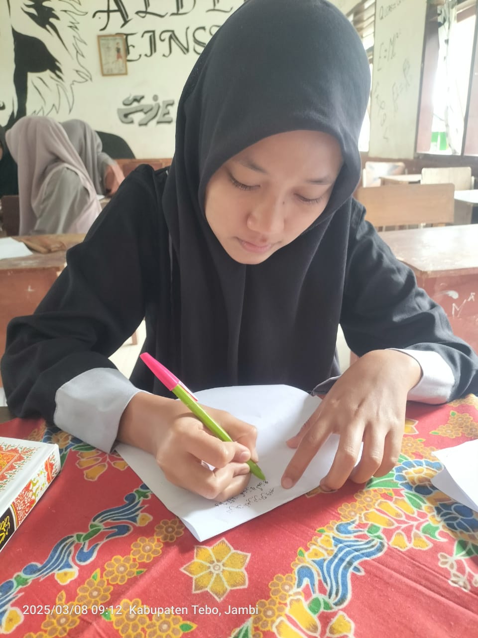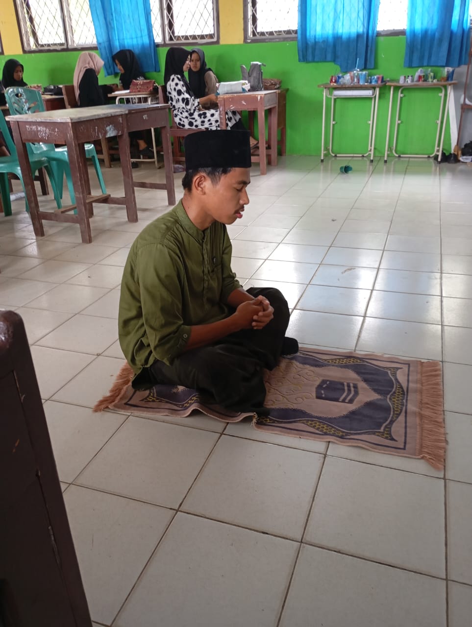 Ketua Panitia UM Wahyuni, S.Pd.I, ditemui Media ini di secretariat Panitia : “ Ujian ini dilaksanakan menggunakan 5 ruangan kelas, pada Ujian ini, siswa diminta untuk melaksanakan rangkaian praktik dengan benar bersamaan dengan pembacaan niat dan doa-doa dalam praktik ibadah.