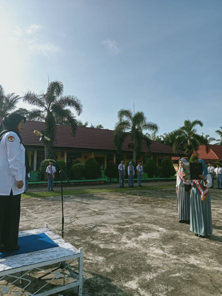 Pembina upacara pada hari Senin ini adalah Kiki Detriani guru mata pelajaran Prakarya dan Kewirausahaan. Dalam amanahnya Kiki memberikan apresiasi kepada petugas upacara karena sudah melaksanakan tugasnya dengan baik.