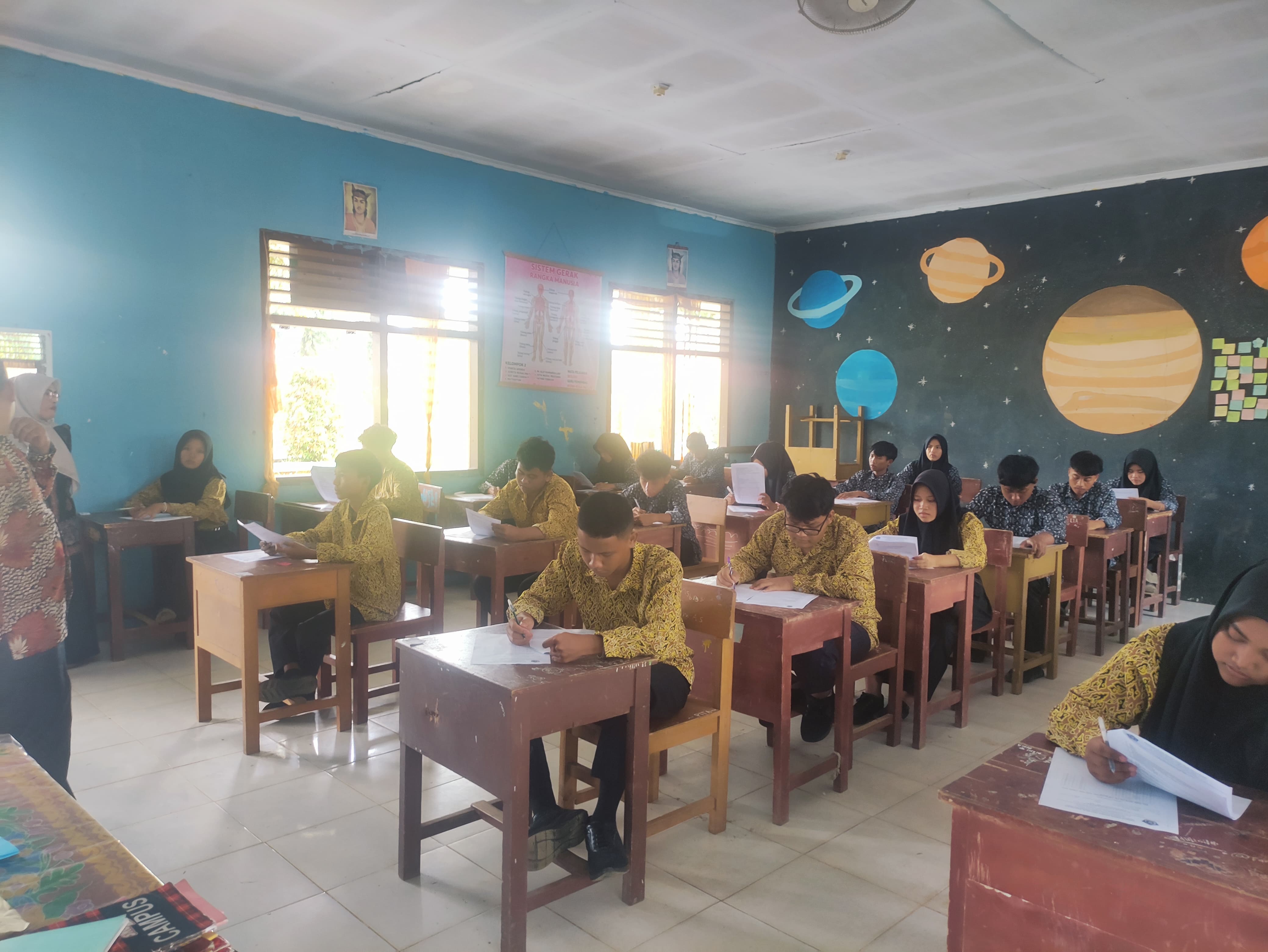 “ Alhamdulillah siswa kita sudah menunjukkan kedisiplinan dan semangat belajar yang tinggi, terbukti sampai hari ketiga ini ujian masih berlangsung.†ujar Kamad di hadapan siswa dan pengawas.