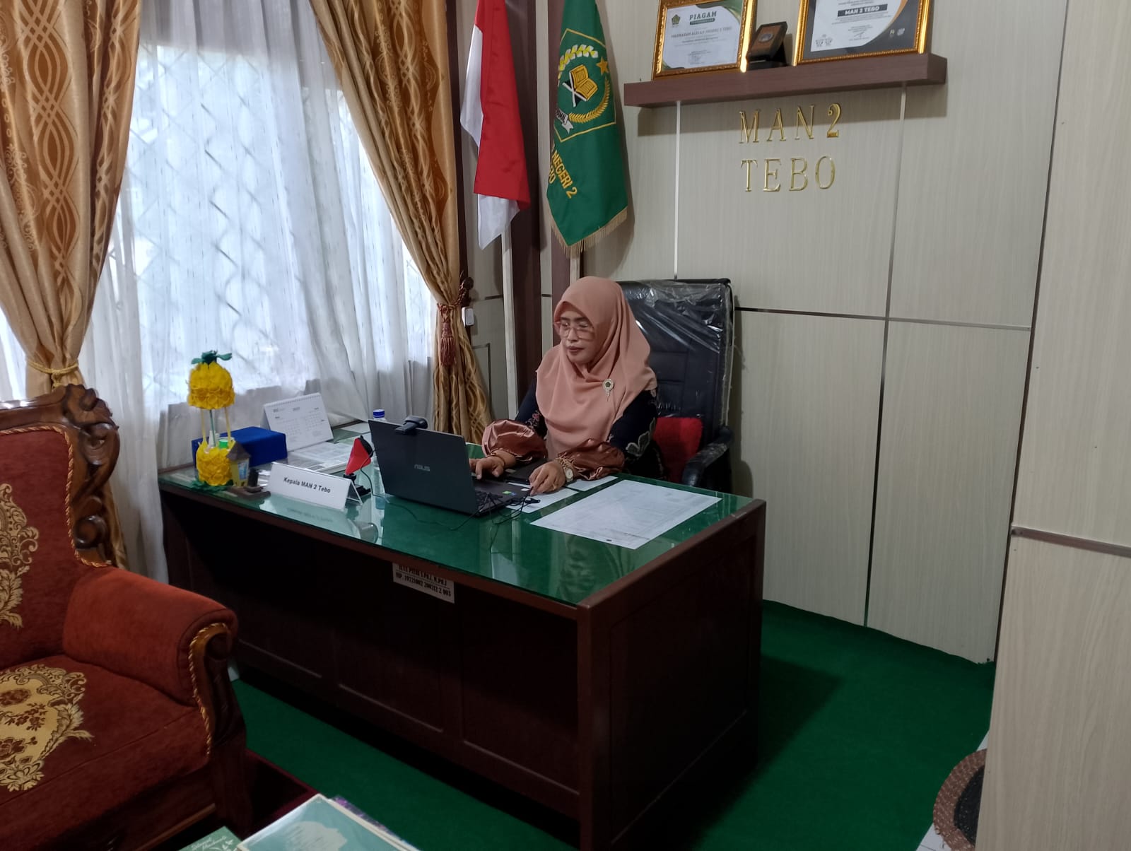 Tebo- MAN 2 Tebo salah satu Madrasah yang ditunjuk dalam pilot project Zona Integritas (ZI) Tahun 2025, sebagaimana SK dari Dirjen Pendis No 1017 tahun 2025 tentang pilot project Zona Integritas mengikuti zoom meeting dengan Kanwil Kemenag Provinsi Jambi pada Rabu, 18 Juni 2025
