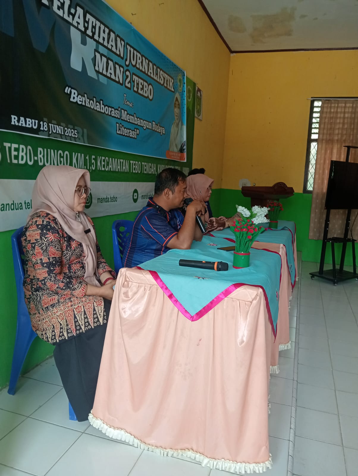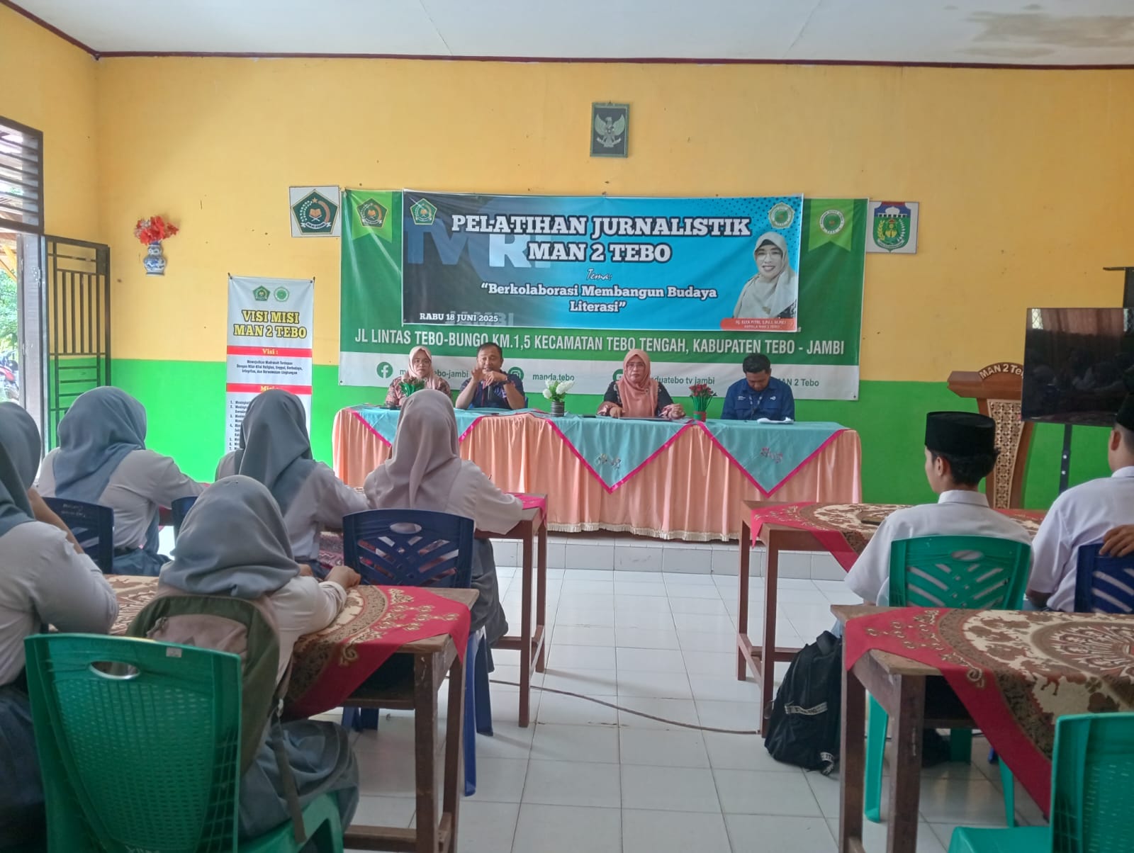 MAN 2 Tebo Guna meningkatkan kemampuan dalam bidang jurnalistik dan pengelolaan media sosial, Tim Hubungan Masyarakat (Humas) MAN 2 Tebo Melaksanakan Pelatihan Jurnalistik dengan Tema "Berkolaborasi Membangun Budaya literasi" Rabu, 18 Juni 2025 di ruang Pertemuan MAN 2 Tebo