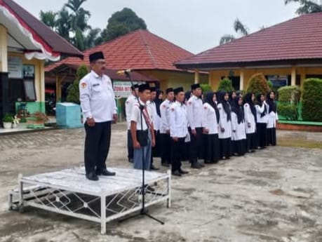 " Kita semua berharap agar seluruh Warga Madrasah dapat mengimplementasikan nilai-nilai disiplin dalam kehidupan sehari-hari, baik di Madrasah maupun di lingkungan masyarakat, Ketaatan terhadap peraturan atau norma positif yang berlaku di lingkungan madrasah ini wajib dipatuhi, salah satunya yaitu dalam berdisiplin mengikiti upacara hari Senin ini dengan tepat waktu, guru dan tendik sama-sama kita selektif dalam memberi izin kepasa peserta didik, siswa menghormati guru dan tidak melakukan tindak kekerasan, Bullying / Intimidasi †Ujarnya.
