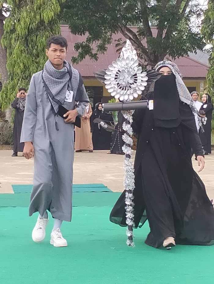 Para peserta utusan perkelas dengan percaya diri mengutus dan menampilkan busana muslim dan Muslimah ala timur tengah..