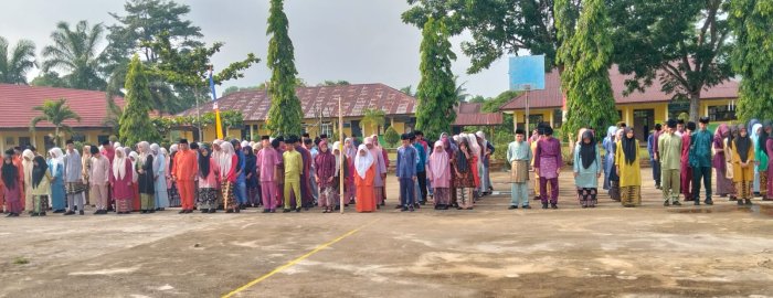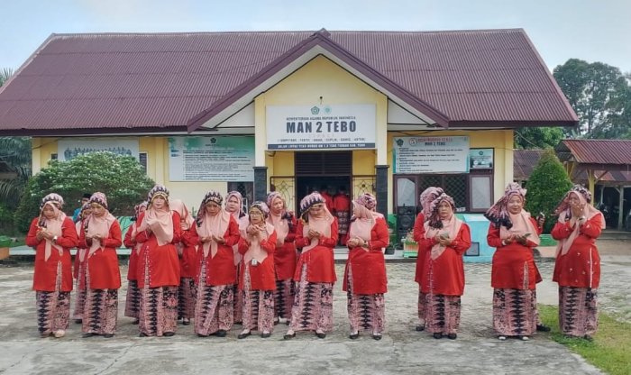 Terlihat semua peserta mengenakan pakaian adat Khas Melayu Jambi, Upacara diikuti seluruh Civitas Akademika MAN 2 Tebo mulai Kamad, Kaur TU, Para Waka, Majelis guru staf dan siswa/siswi Kelas X, XI dan XII.