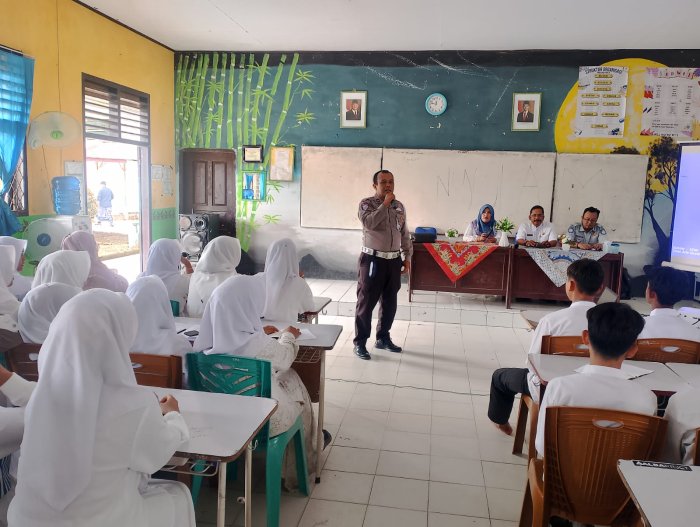 JURNALIS MANDATE– Rabu, (22/10) MAN 2 Tebo melaksanakan kegiatan Dikmas Lantas Police Goes to School yang diselenggarakan oleh Unit Kamsel Sat Lantas Polres Tebo. Kegiatan ini berlangsung di aula MAN 2 Tebo setelah pelaksanaan sholat duha, dengan tujuan memberikan pemahaman dan kesadaran kepada peserta didik mengenai pentingnya tertib berlalu lintas serta keselamatan di jalan.