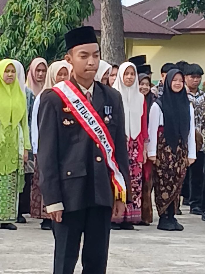 Upacara bendera kali ini dipimpin oleh M haqqy arrasyd siswa kelas XII 4, yang tampil percaya diri mengenakan pakaian ala Bung Karno. Ia bertugas sebagai pemimpin upacara dengan penuh semangat dan rasa bangga, memperlihatkan antusiasme dalam memperingati jasa para pahlawan.
