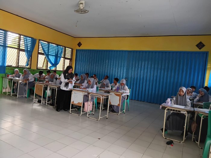 Tebo (Humas MAN.2 Tebo). Dalam upaya meningkatkan disiplin dan ketertiban di lingkungan madrasah, Madrasah Aliyah Negeri 2 Tebo telah menerapkan program guru piket yang bertugas untuk mengontrol kehadiran siswa dan jam mengajar tenaga pendidik serta memastikan lingkungan belajar yang kondusif. Pada Selasa (11/11/2025) salah satu guru piket yang bertugas, Uswatun Hasana, S.Kom.I aktif melaksanakan tugasnya dengan mengecek kehadiran siswa di setiap kelas dan mengecek jadwal mengajar di MAN 2 Tebo.