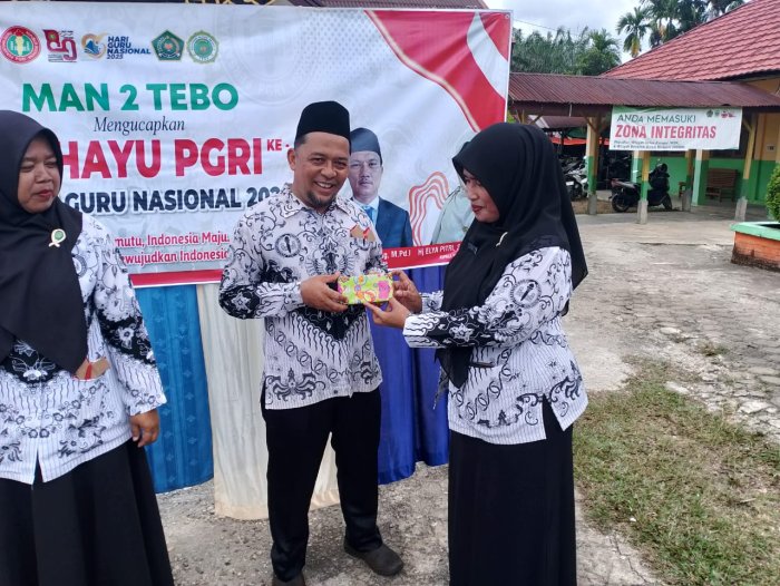 Suasana MAN 2 Tebo tampak berbeda selama pelaksanaan rangkaian kegiatan memperingati Hari Guru Nasional ke - 80 yang berlangsung di halaman MAN 2 Tebo usai upacara peringatan hari guru para guru mengikuti berbagai perlombaan dengan penuh semangat dan keceriaan. Selasa 25 November 2025