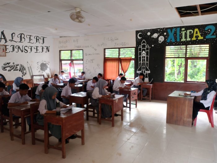 Pelaksanaan ujian pada hari kedua ini melibatkan seluruh siswa dan siswi kelas X hingga XII sebagai bagian dari penilaian akademik mereka pada semester ganjil. Ujian dilaksanakan di ruangan kelas yang telah disiapkan dengan baik, dan prosesnya diawasi oleh para pengawas yang telah ditunjuk dari unsur tenaga pendidik MAN 2 Tebo.