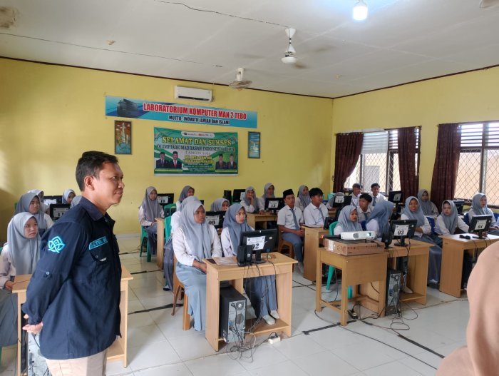 HUMAS M A N 2 Tebo TV, Muara Tebo. News – Selasa (20/01/2026)— MAN 2 Tebo menerima kunjungan tim sosialisasi dari Universitas Islam Negeri (UIN) Jambi dalam rangka memberikan informasi dan motivasi kepada siswa kelas XII terkait pilihan melanjutkan pendidikan ke perguruan tinggi. Kegiatan ini dilaksanakan di ruang lab komputer madrasah dan diikuti oleh seluruh siswa kelas XII.