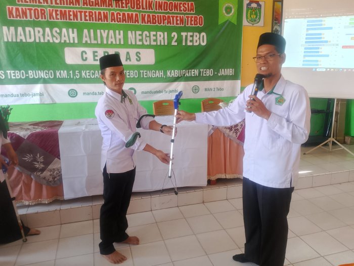 HUMAS M A N 2 Tebo TV, Muara Tebo, News - 07 Februari 2026 - Dalam upaya meningkatkan kebersihan lingkungan sekolah dan membangun budaya peduli terhadap kesehatan, Kepala Madrasah Aliyah Negeri (MAN) 2 Tebo Ridwan S.Pd.,I,M.Pd.I, secara resmi menyerahkan alat kebersihan kepada para wali kelas, senin(2/03/2026).